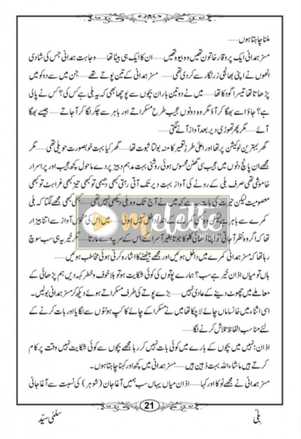 “Billi” is a sensational horror fiction novel; it is an excellent addition by Salma Syed (Senior Urdu Content writer – Delight Media Advertising and Omelette official Content Channel) in the Urdu Adab that immerses you in every scene. It will tear at your heart with someone’s death, ignite romance to accelerate your heartbeat and instil fear, suspense, and curiosity, gradually constructing a home in your thoughts. The history and traditions of ancient Egypt, civilization and culture, knowledge of deities and their rituals and festivals will give you an idea of how superstitions and beliefs can impact life even in today’s advanced technological community. Some characters reflect the spread of apathy in society, while others show excessive cruelty or mere theatrics. The subject and focal point of this novel transition from the history of ancient Egypt to its connection with Karachi, the help it receives from India, the events that unfold in Sukkur, how the divine curse of death traps an entire family and tightens its grip on conscious eyes, and how the Almighty ultimately annihilates the godly and its progeny. Scenic descriptions and progression, fear and terror, violence, and brutality in their ascendancy—how will they manifest? But that’s not all; this novel has much more that cannot be expressed in words alone.